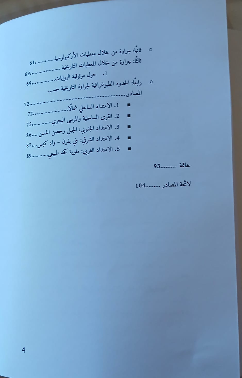 أ - تاريخ مدينة بركان/ أبركان ( عاصمة بني يزناسن ) - مدينة حديثة - النواة الأولى للمدينة - تطور ونمو المدينة طوبونيميا ( بركان - أبركان) ب - بنو يزناسن - طوبونيميا الأصل والعمق التاريخي ج - كرونولوجيا الأحداث التاريخية لبني يزناسن د - اتحادية قبائل ياث يزناسن - بني خالد ( ياث خالد ) - بني عتيق ( ياث حتيك ) - آث وريمش ( بني وريمش ) - بنو يزناسن المهاجرون - الزوايا ببني يزناسن ه - التراث المادي واللامادي ببني يزناسن - الطبيعة ببني يزناسن - المنابع والعيون - الأنهار والوديان - الآثار ببني يزناسن - الآثار المادية - المظهر العام لزي بني يزناسن في القرن 19 - الأسواق القديمة - مقابر بني يزناسن - التراث اللامادي لبني يزناسن اللغة الأمازيغية اليزناسنية مرفقات